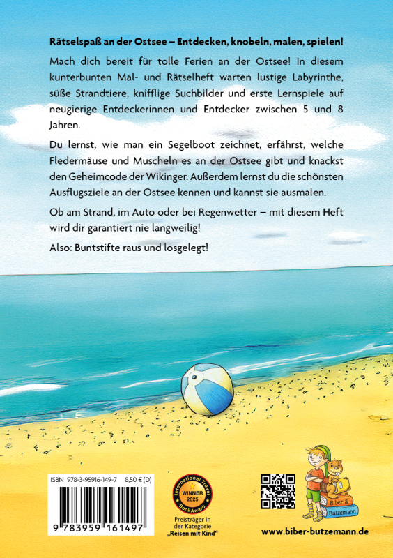 Für neugierige Entdeckerinnen und Entdecker zwischen 5 und 8 Jahren, die gern rätseln, malen und von der Ostsee träumen. Dieses kunterbunte Rätsel- und Malheft lädt Kinder ein, spielerisch in die Welt von Strand, Meer und Ostsee-Tieren einzutauchen. Ob im Urlaub, auf Reisen oder zu Hause – hier wird geknobelt, gemalt, gelernt und gelacht. Ein liebevoller Begleiter für kleine Ostsee-Fans, der garantiert keine Langeweile aufkommen lässt.